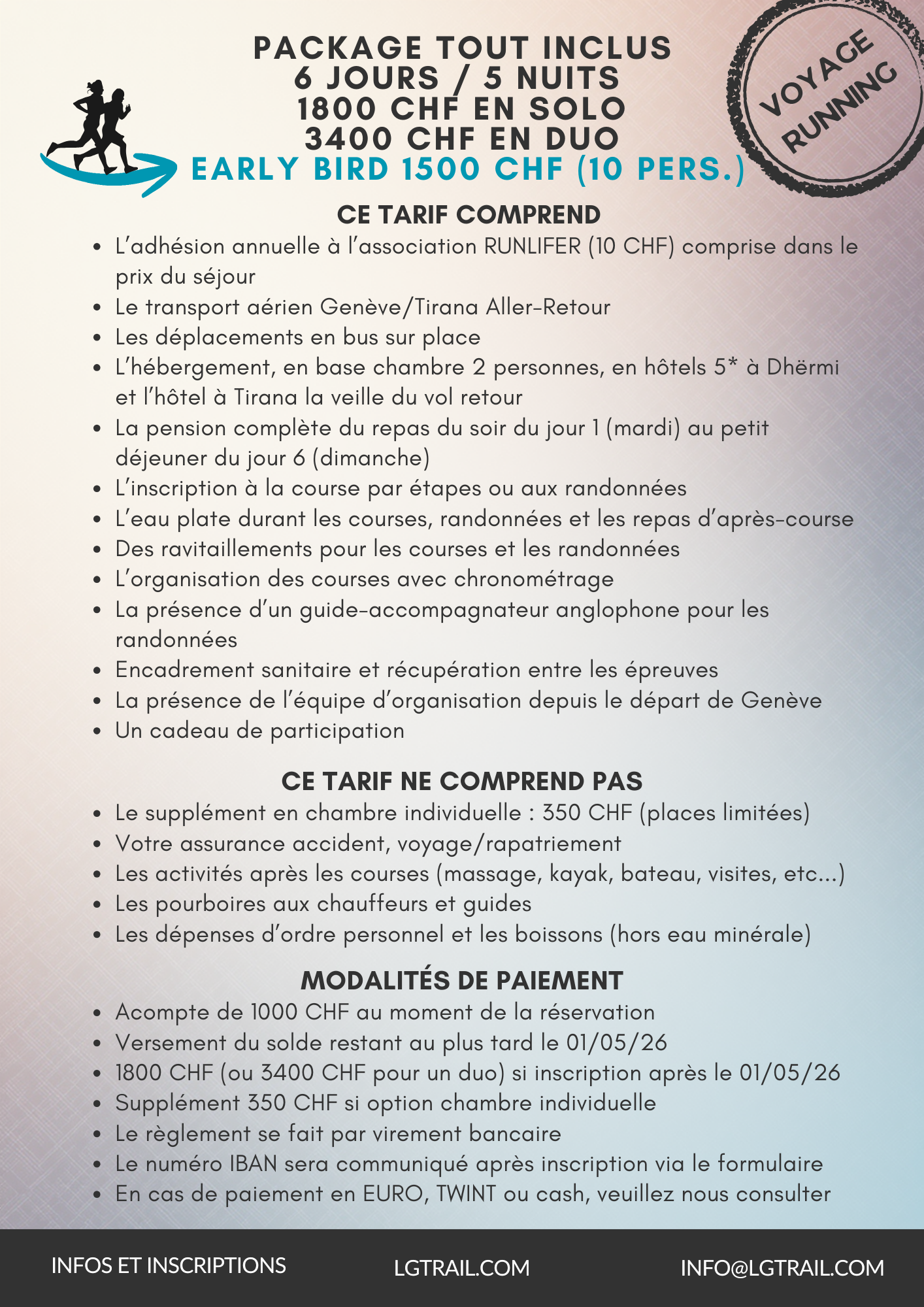 MÉLANGE DE COURSE À PIED, TRAIL, COMPÉTITION, PLAGE ET FARNIENTE, GASTRONOMIE ALBANAISE, DÉCOUVERTE ET AMBIANCE DE GROUPE.